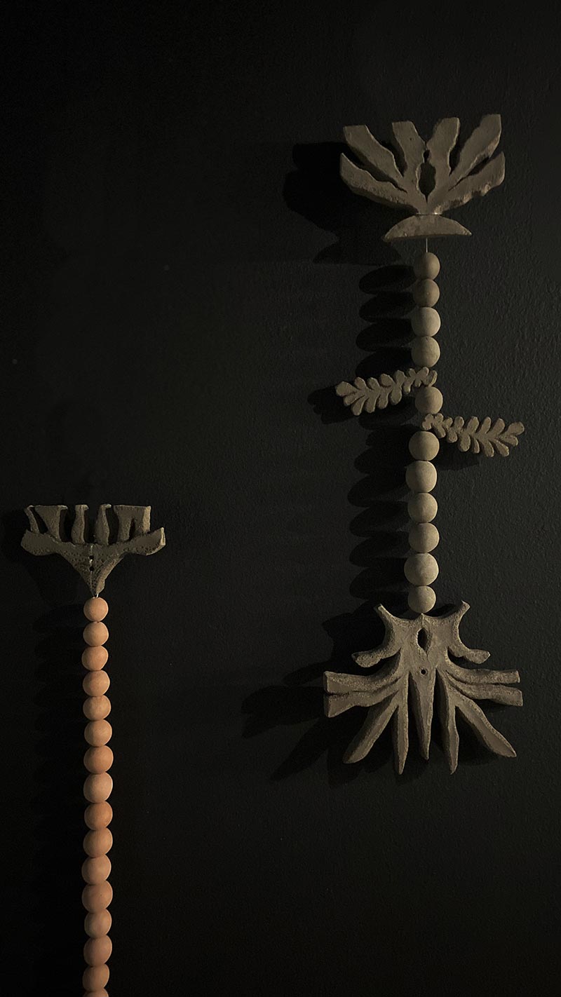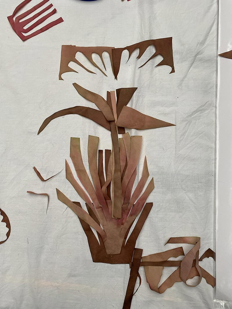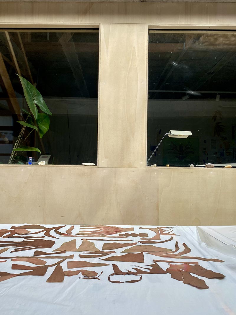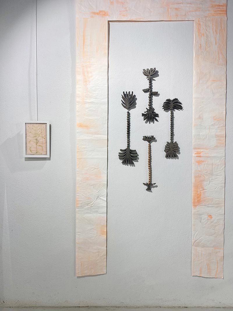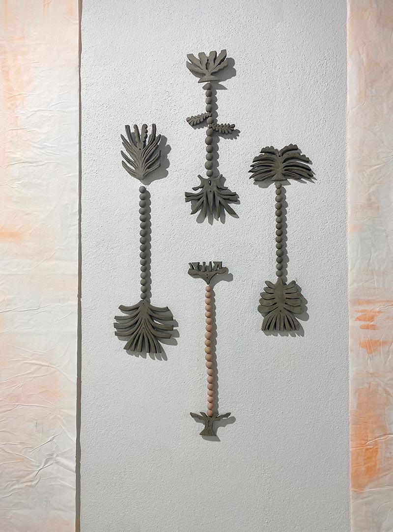 Tandis que je travaille dans mon atelier et qu’une loi Duplomb menace à nouveau le vivant, NABTA* trouve très rapidement un écho plus global. Les plantes sont la base de la vie et rendent à l’homme d'immenses services écosystémiques. On associe les espèces disparues au monde animal, beaucoup moins aux plantes. Pourtant, le changement climatique, les activités humaines ou l’urbanisation mettent en péril la biodiversité végétale. Des centaines d’espèces végétales ont disparu et continuent à disparaître ! Par une série de gestes qui produisent des formes végétales matricielles _dessiner, peindre, imprimer, sculpter, découper, suturer, coudre, assembler_ je tente de réparer et restaurer le vivant. Ces tentatives plastiques créent des sortes d’ex-voto païens comme des signes de reconnaissance et de gratitude pour le monde du vivant qui pourraient aussi prendre la forme d’amulettes comme pour se protéger de notre humanité qui dérive.