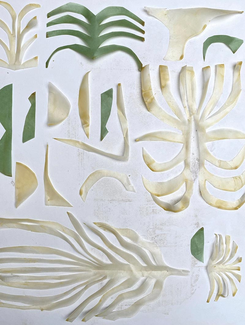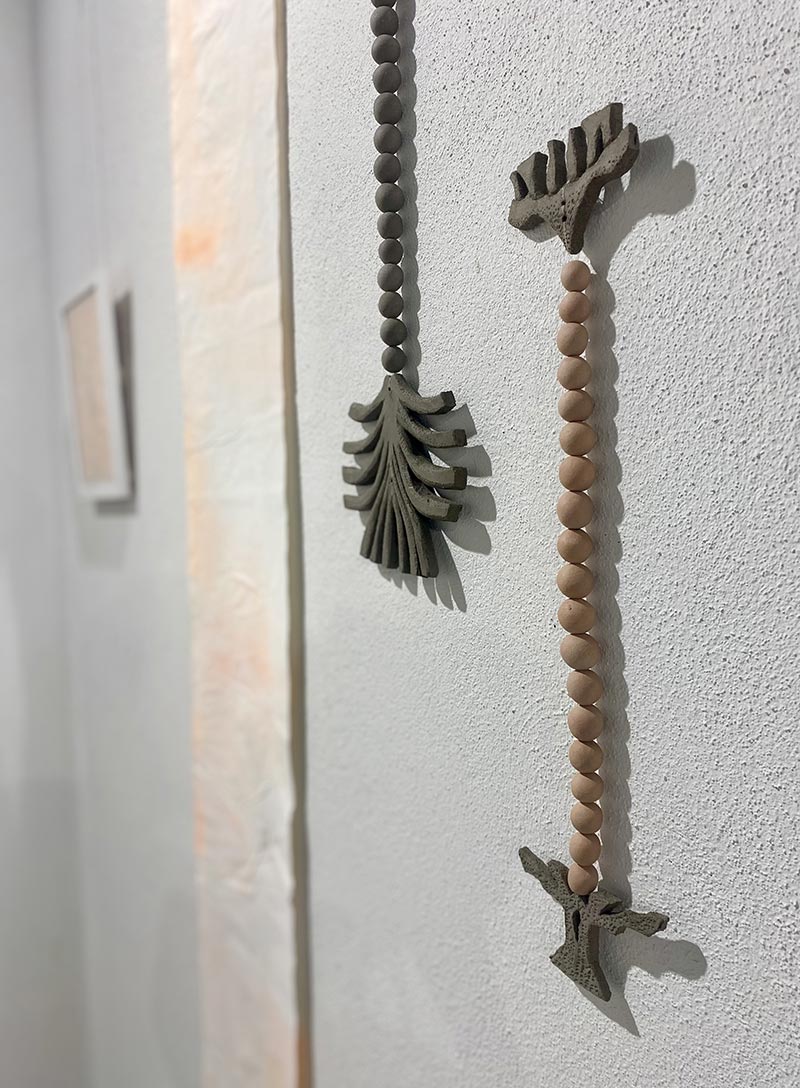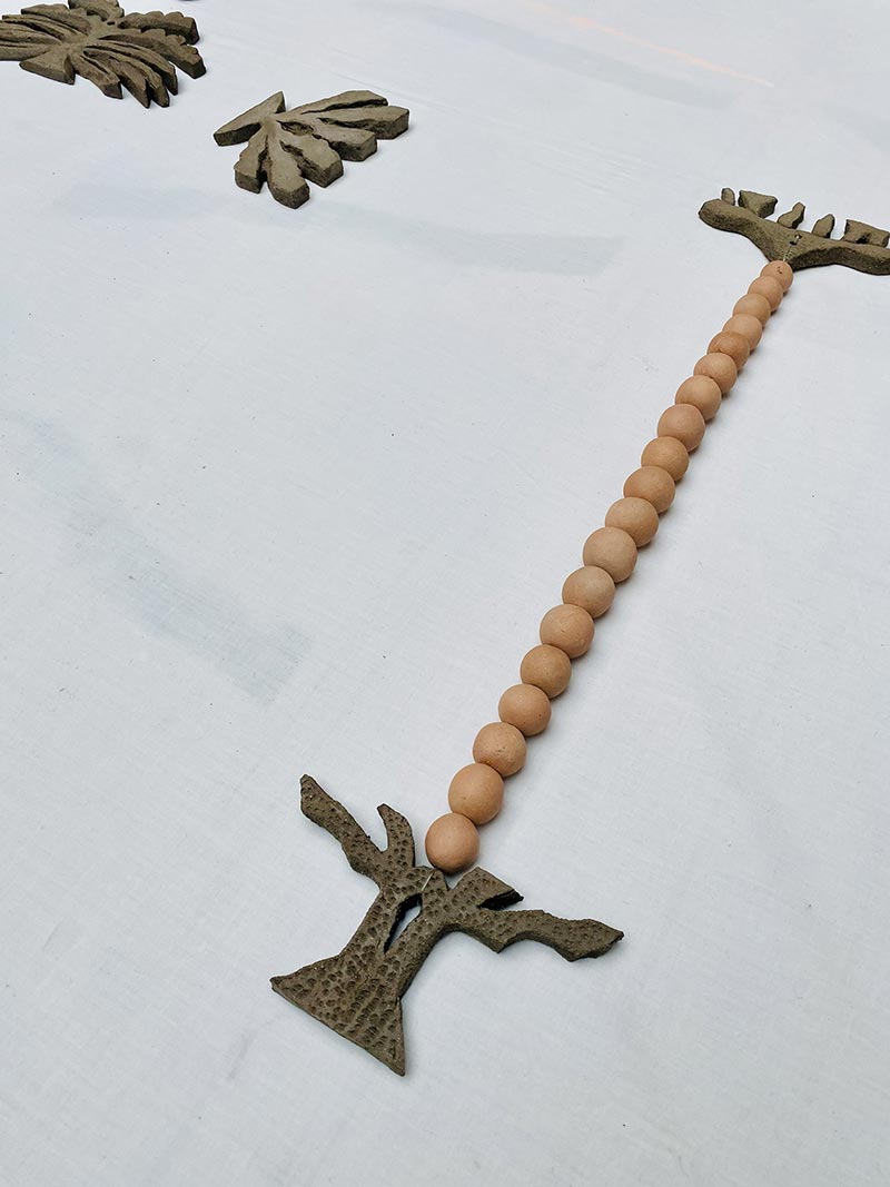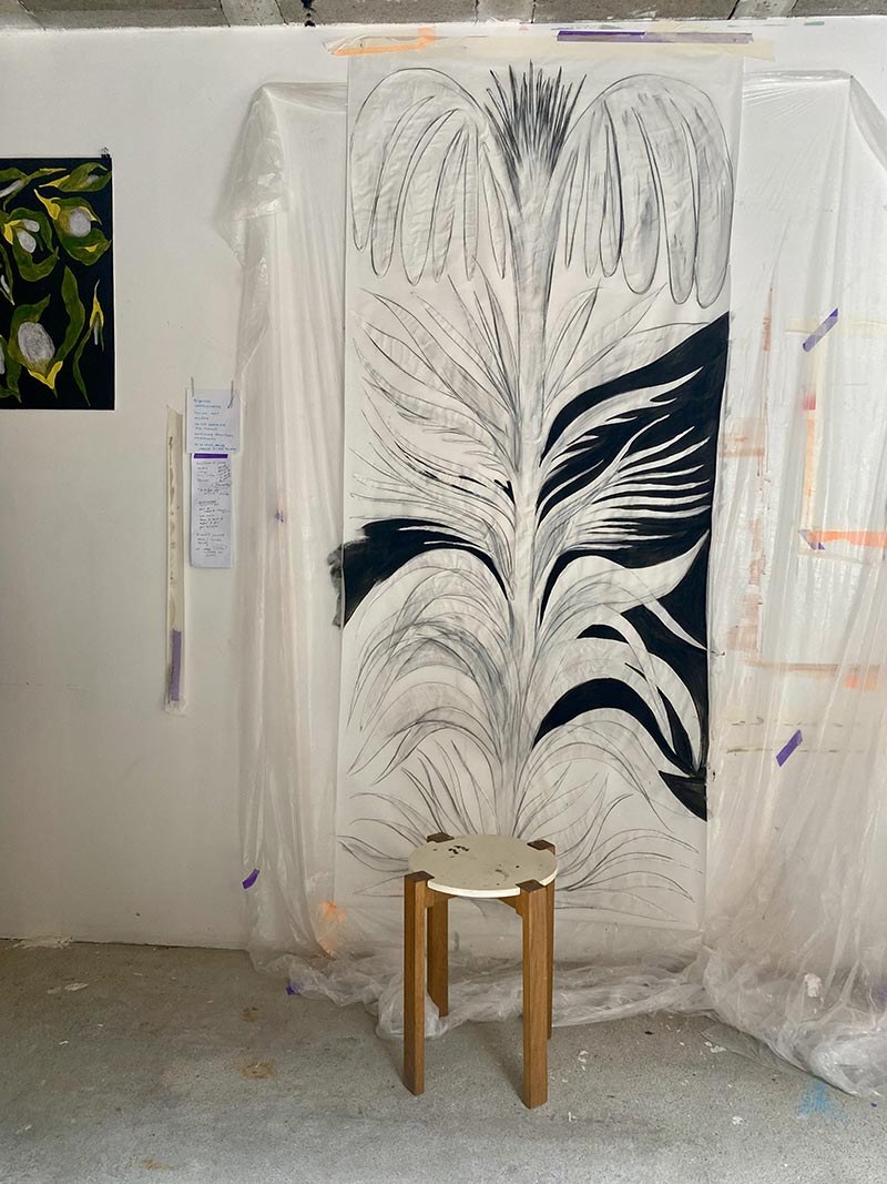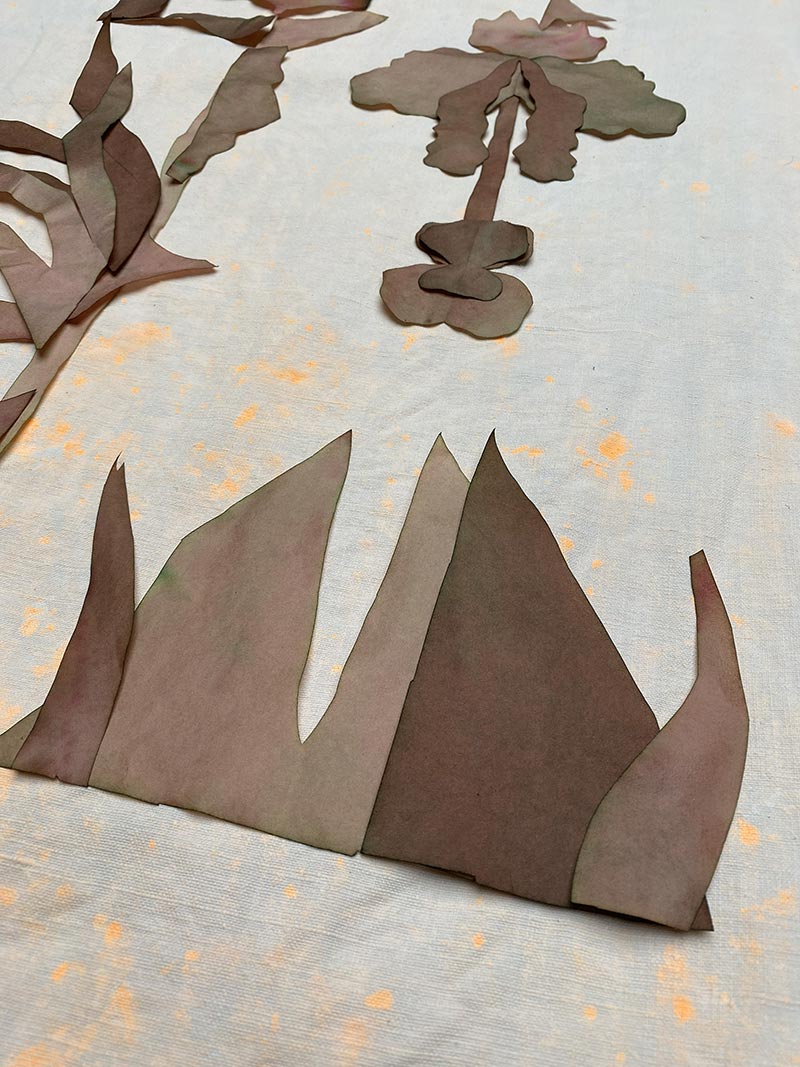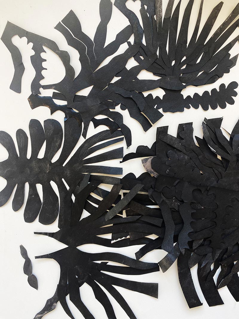 Tandis que je travaille dans mon atelier et qu’une loi Duplomb menace à nouveau le vivant, NABTA* trouve très rapidement un écho plus global. Les plantes sont la base de la vie et rendent à l’homme d'immenses services écosystémiques. On associe les espèces disparues au monde animal, beaucoup moins aux plantes. Pourtant, le changement climatique, les activités humaines ou l’urbanisation mettent en péril la biodiversité végétale. Des centaines d’espèces végétales ont disparu et continuent à disparaître ! Par une série de gestes qui produisent des formes végétales matricielles _dessiner, peindre, imprimer, sculpter, découper, suturer, coudre, assembler_ je tente de réparer et restaurer le vivant. Ces tentatives plastiques créent des sortes d’ex-voto païens comme des signes de reconnaissance et de gratitude pour le monde du vivant qui pourraient aussi prendre la forme d’amulettes comme pour se protéger de notre humanité qui dérive.